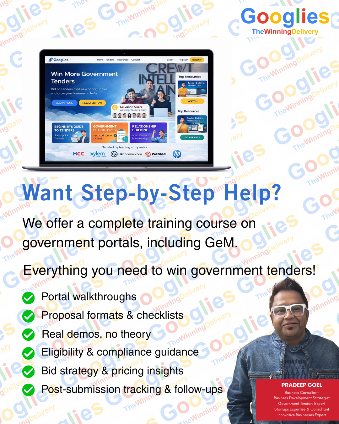 Googlies offers specialized GeM tender consultation & bidding services to help you win more government contracts and grow your business..